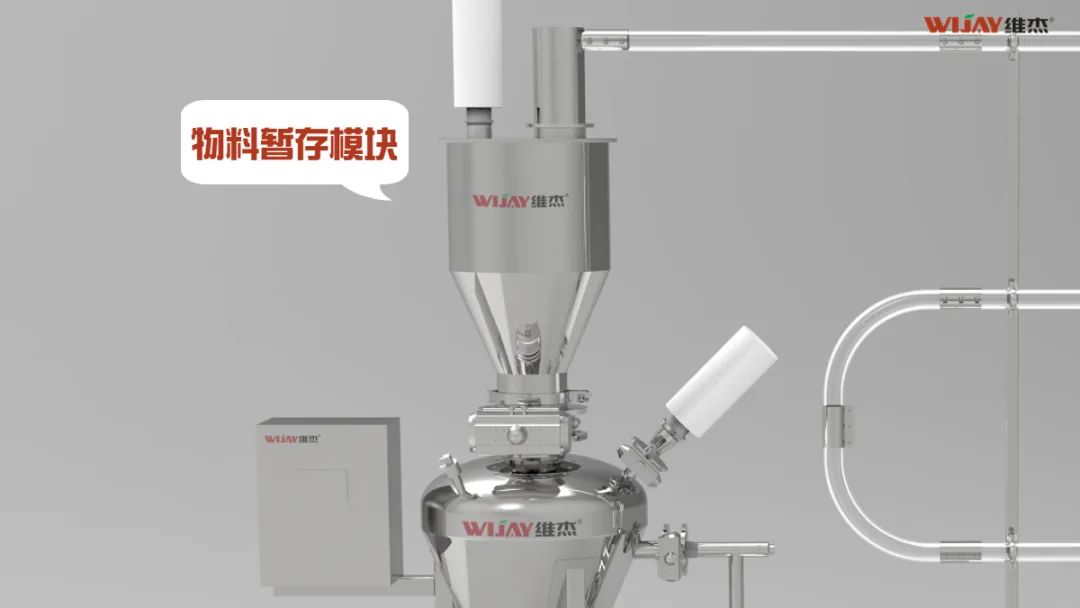 Material storage module: The material is transferred to the storage bin through the feeding port, and the air in the bin is discharged through the exhaust port